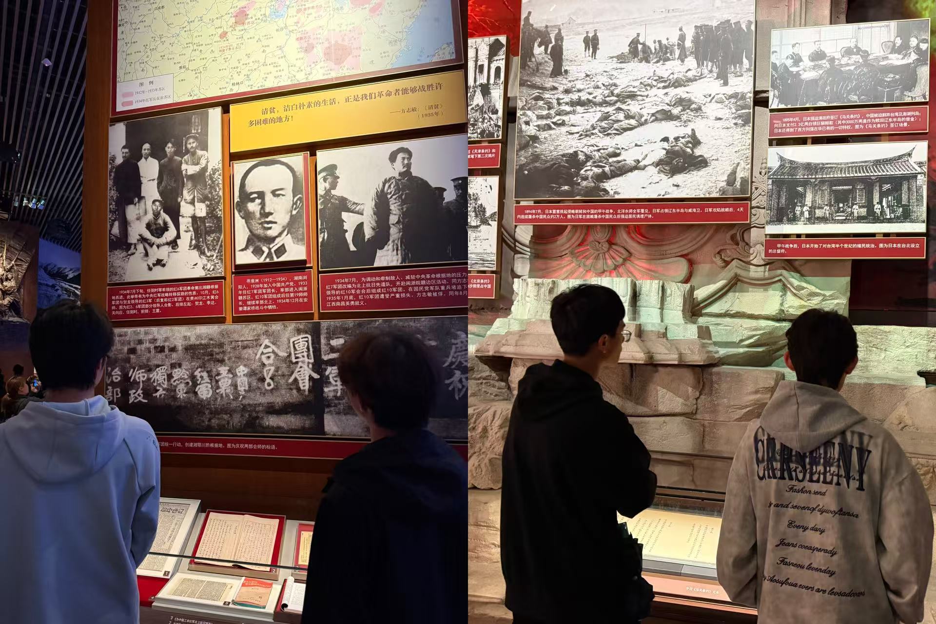 步入中国共产党历史展览馆,同学们系统回顾了党的百年奋斗之路。从马克思手稿到脱贫攻坚图景,从一大会址复原到火神山医院模型,众多图片与实物串联起感人历史记忆,展现了党领导革命、建设与改革的壮丽史诗。同学们深刻认识到红色政权与中国特色社会主义的来之不易,进一步坚定了“听党话、跟党走”的初心,凝聚起奋发向上的精神力量。